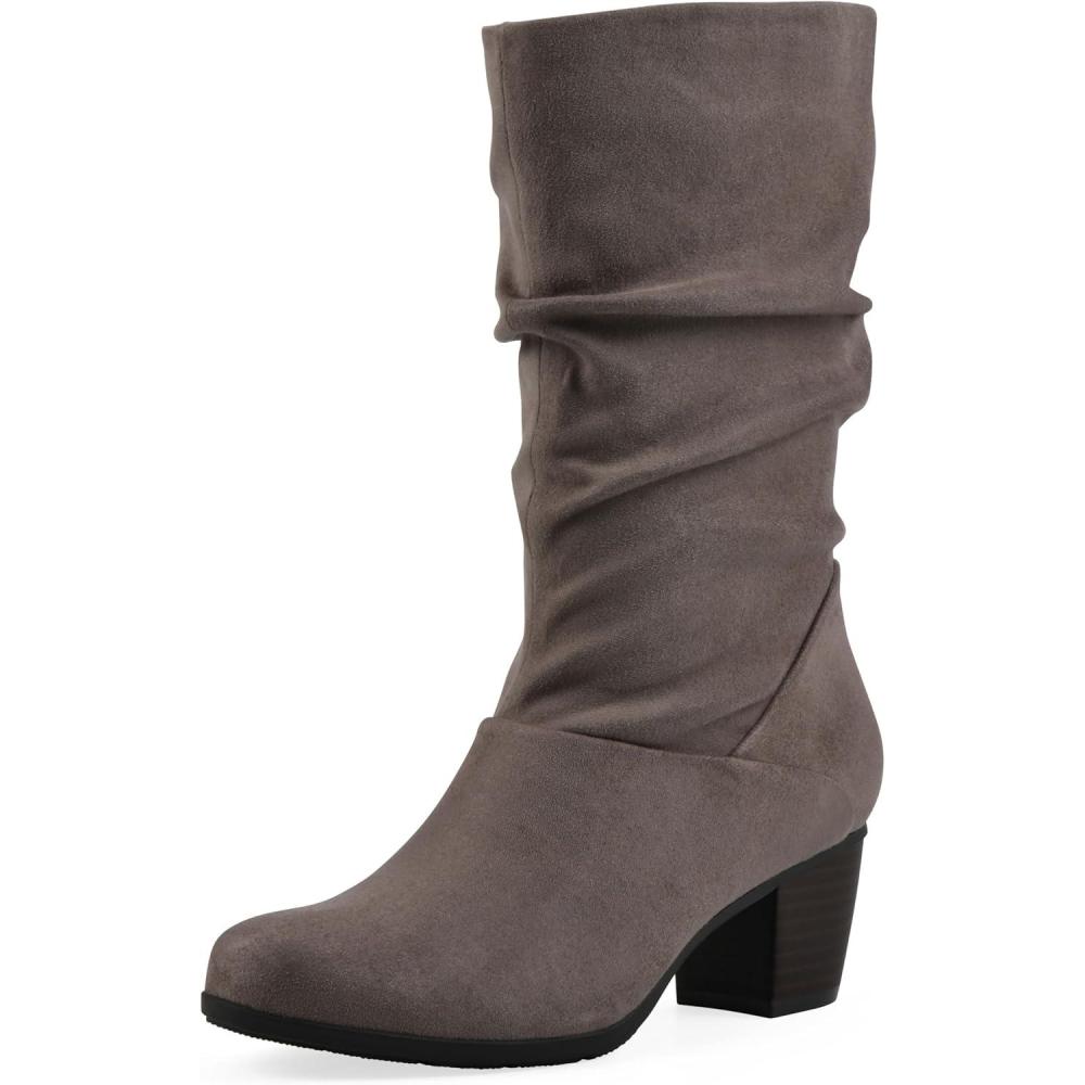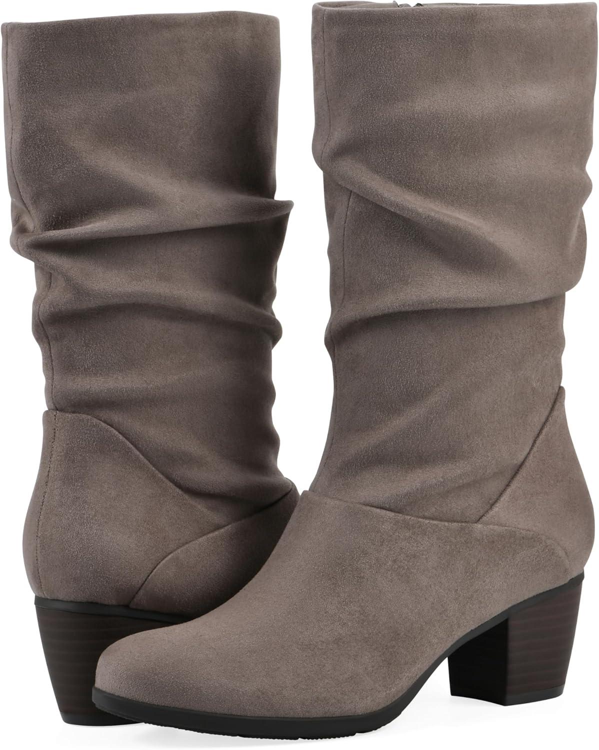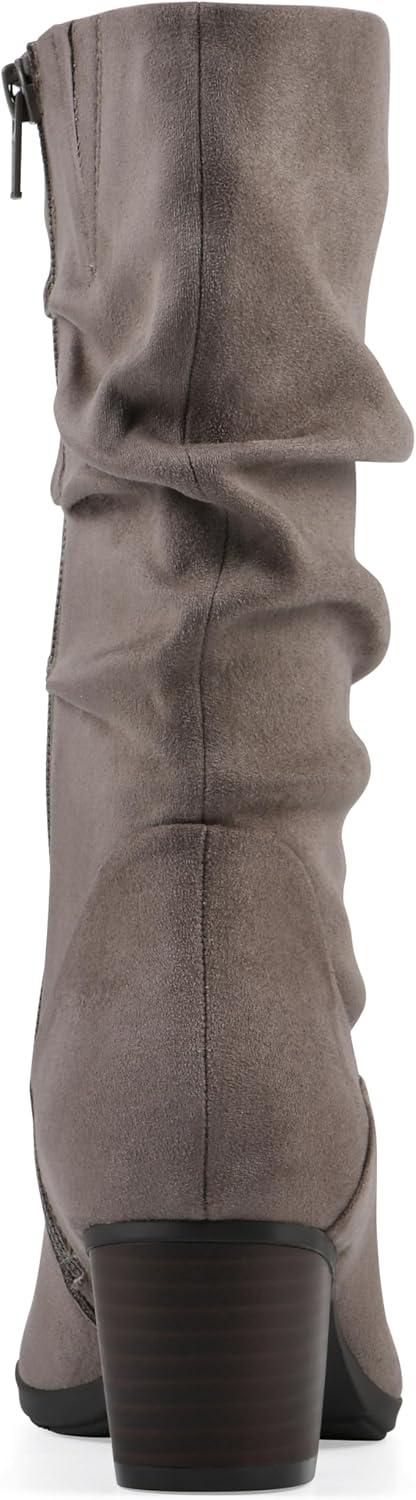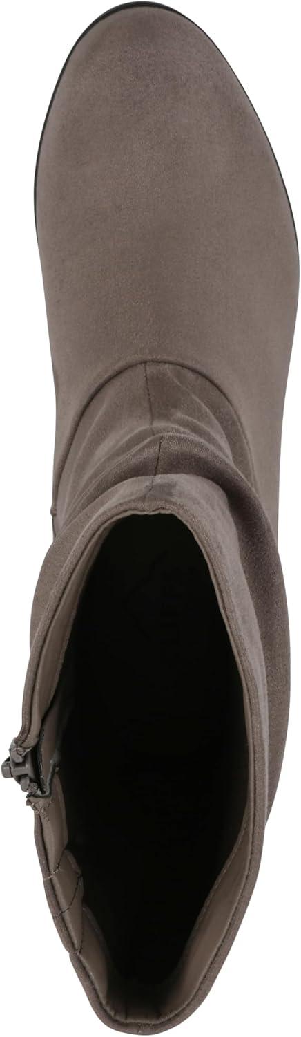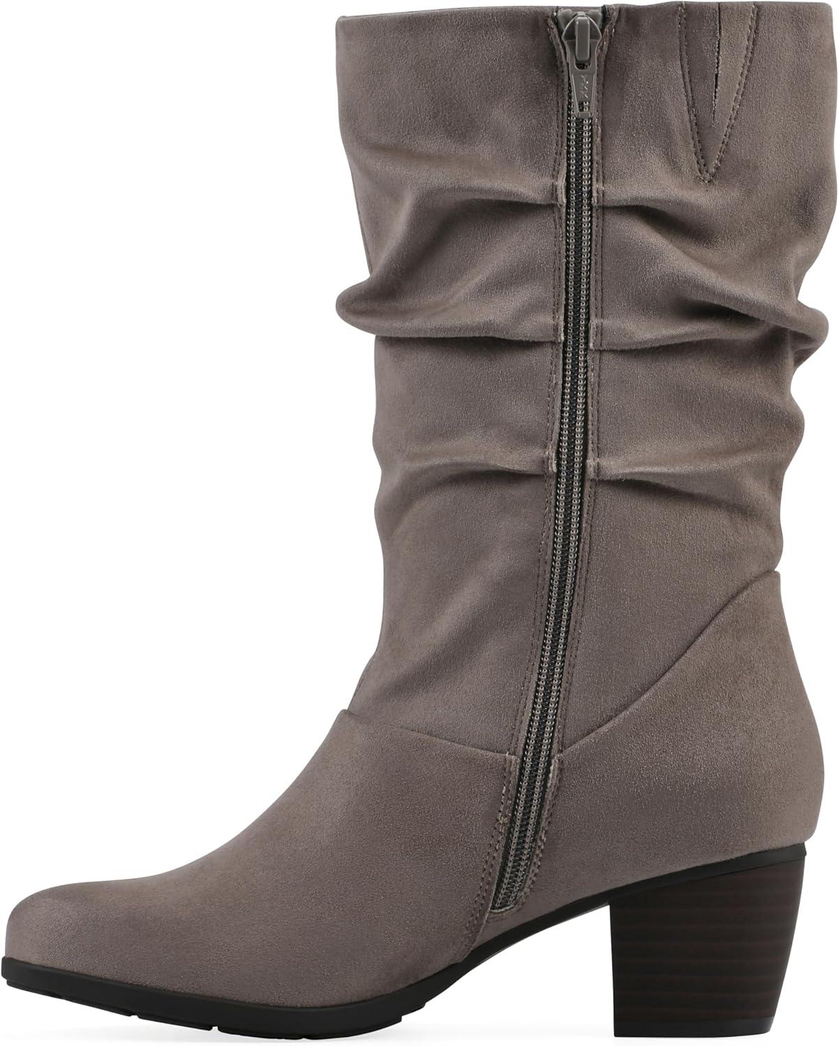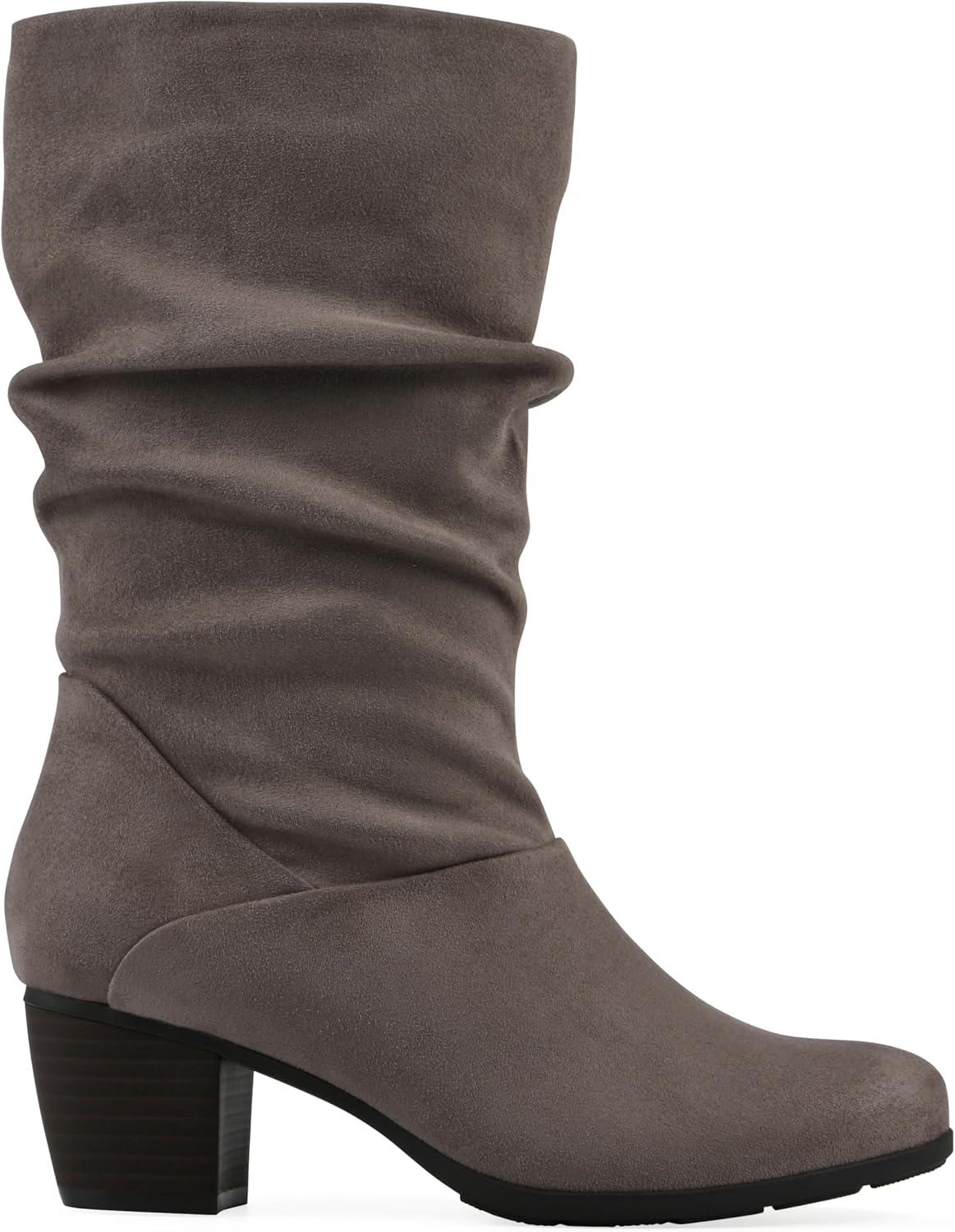 Cliffs by White Mountain Women’s Angelie Cushioned Rouched Block Heel Mid Shaft Boot(Stone/Fabric)