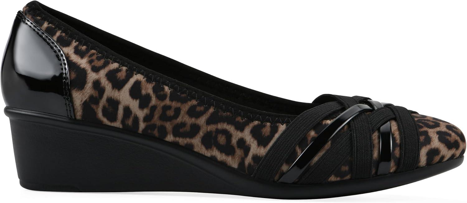 Cliffs by White Mountain Women’s Bowie Cushioned Ballet Wedge Heel(Tan/Leopard/Print)