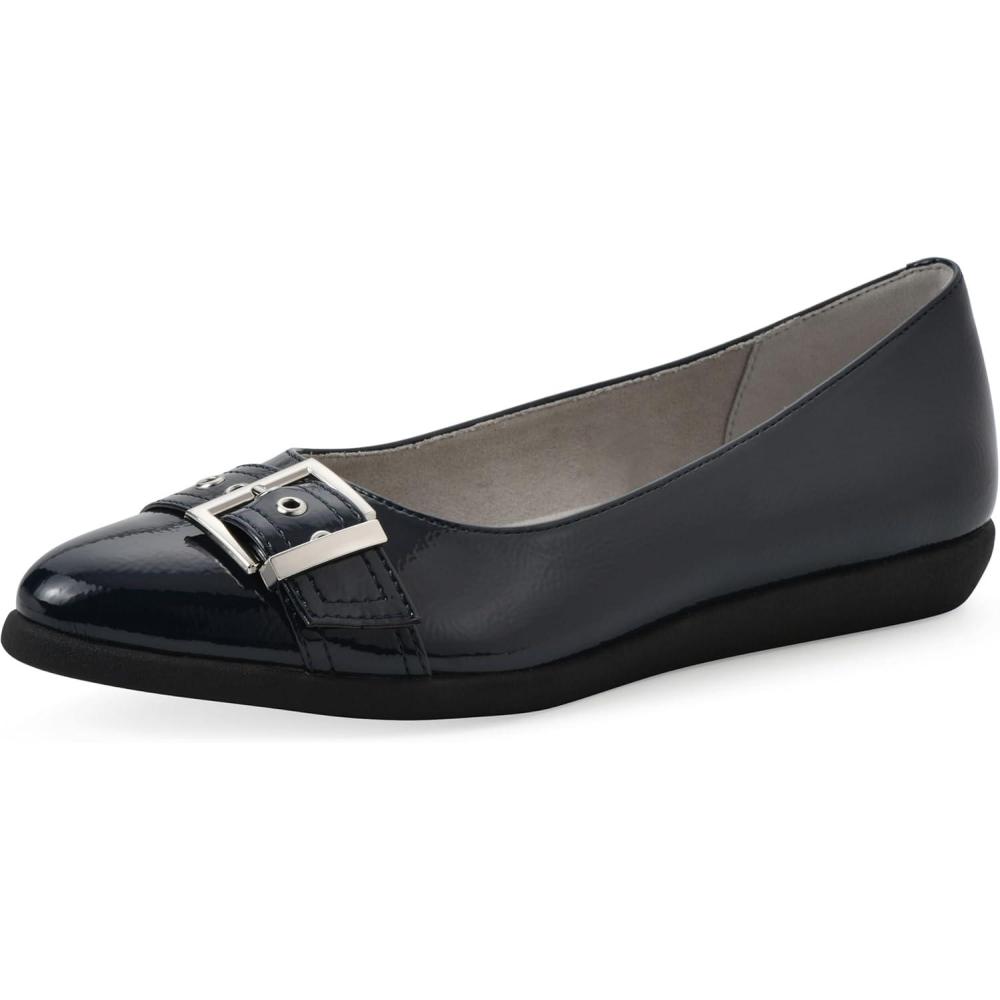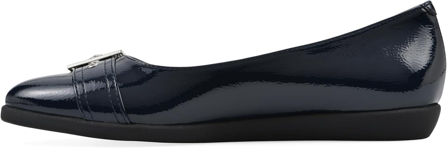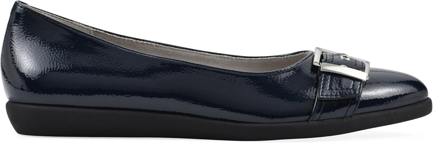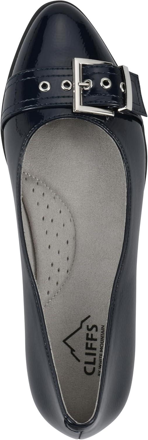 CLIFFS BY WHITE MOUNTAIN Women’s Miliani Cushioned Buckle Flat(Navy/Patent)