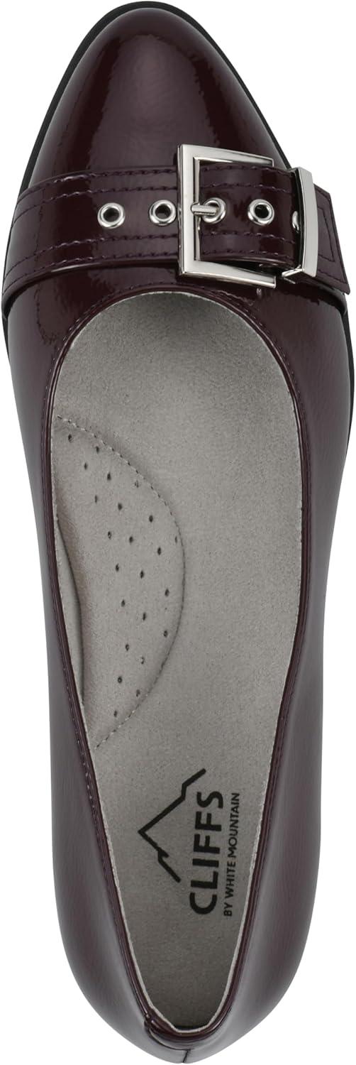 CLIFFS BY WHITE MOUNTAIN Women’s Miliani Cushioned Buckle Flat(Oxblood/Patent)