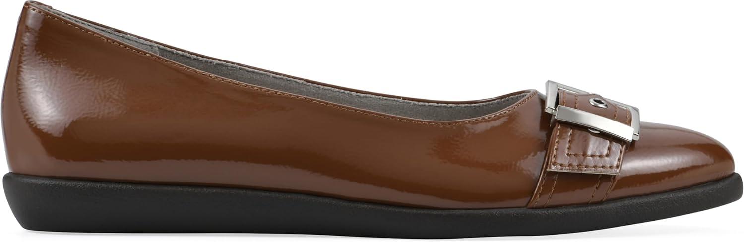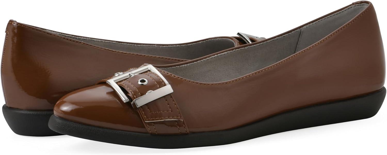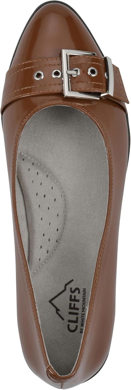 CLIFFS BY WHITE MOUNTAIN Women’s Miliani Cushioned Buckle Flat(Tan/Patent)