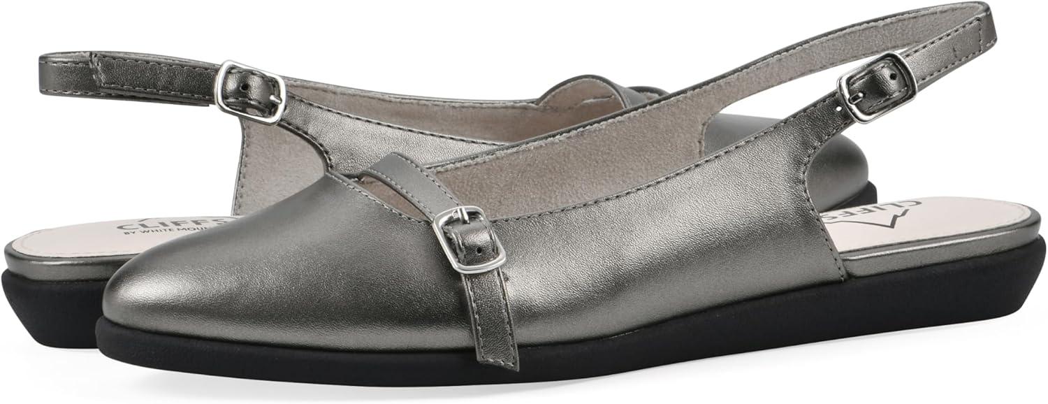 Cliffs by White Mountain Women’s Miloni Cushioned Sling-Back Flat(Pewter/Metallic)